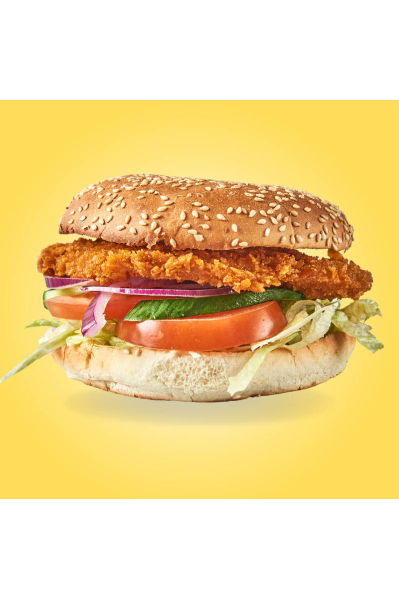 Kylling, grønnsaker, hamburger brød og dressing (Chicken, vegetables, hamburger bread and dressing)