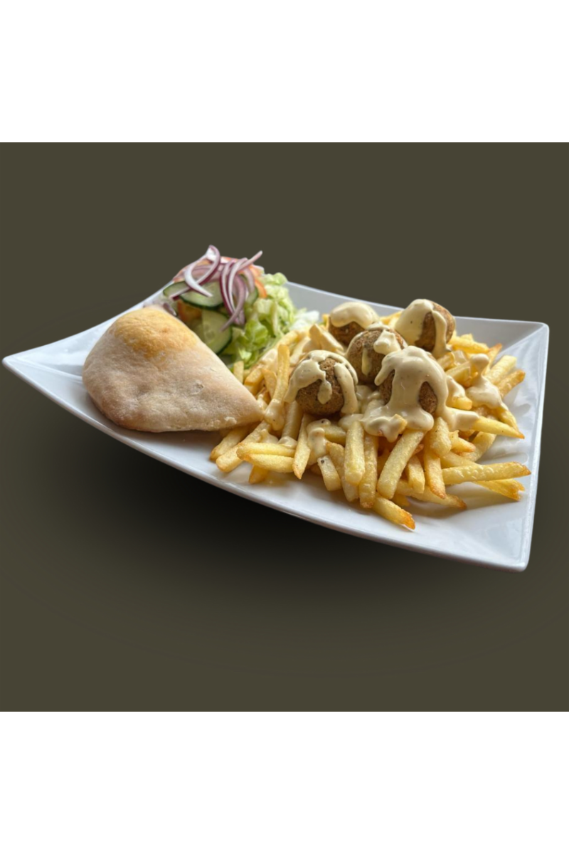 Salat, tomat, agurk, løk og valgfri saus (Salad, tomato, cucumber, onion and optional sauce)